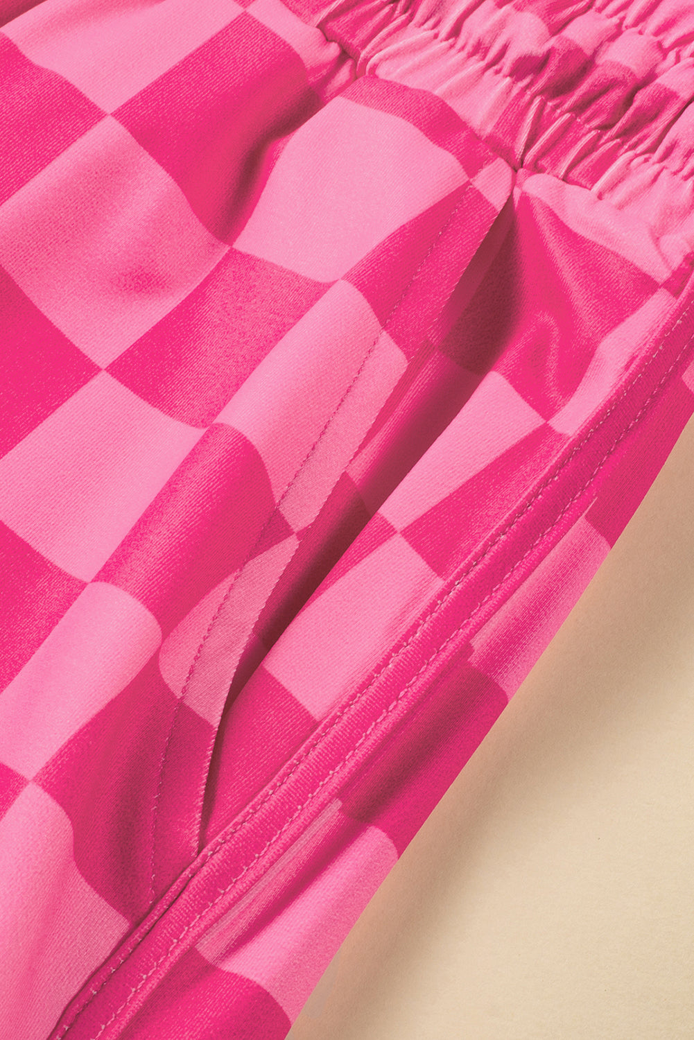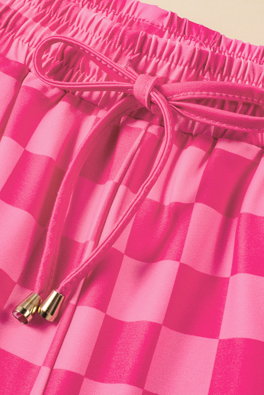 Rose Checkered Drawstring Elastic Waist Casual Shorts