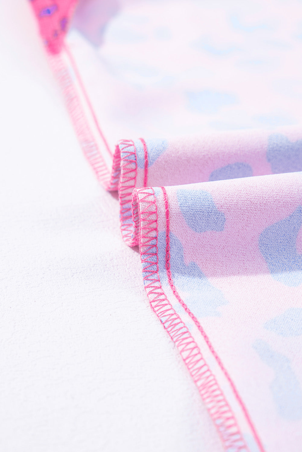 Rose Contrast Leopard Print Plus Size V Neck Blouse