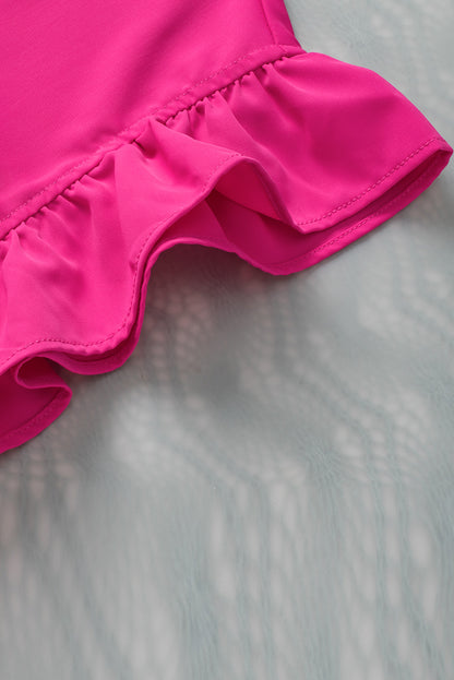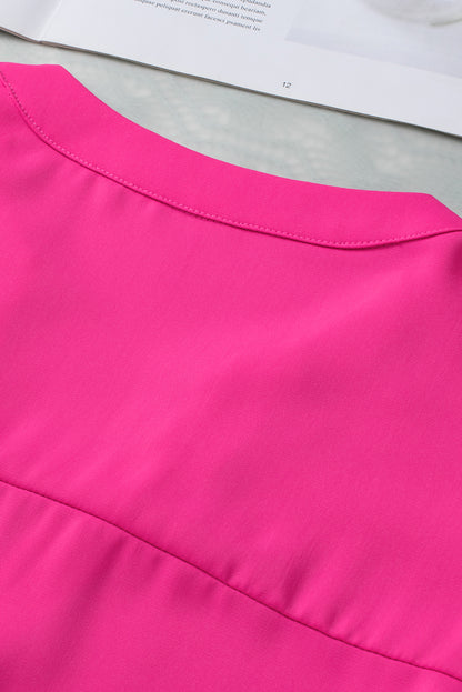 Rose Red Notched Neck Ruffle Sleeve Blouse