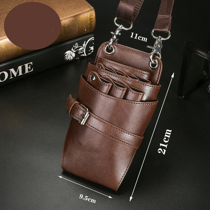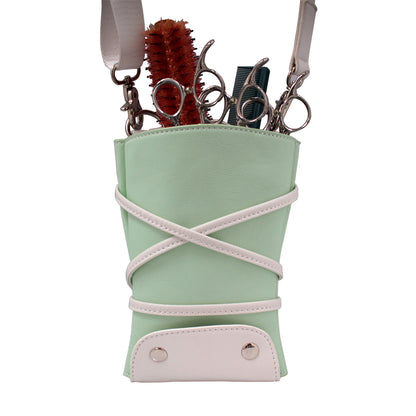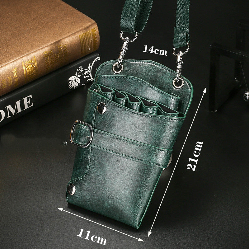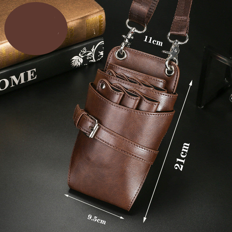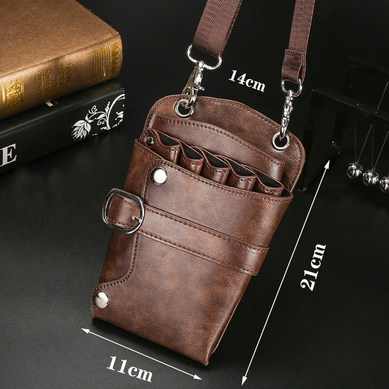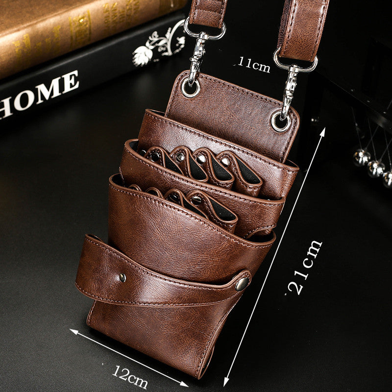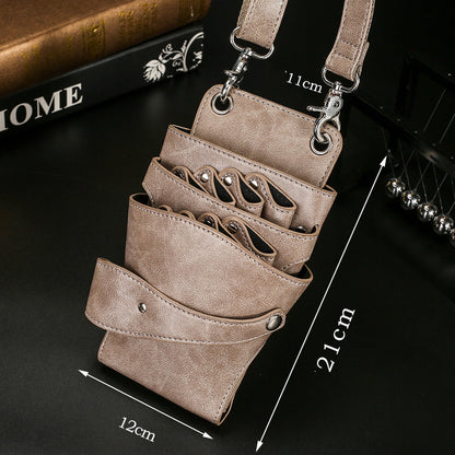 Overview: Carry your hairstyling essentials in style with our Hairstylist Scissors Satchel. Crafted from imported wear-resistant PU leather, this tool satchel is designed to meet the needs of hair stylists, pet groomers, and professionals in the beauty industry. With a sleek and functional design, it provides ample space for scissors, electric tools, combs, and more.