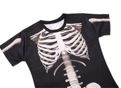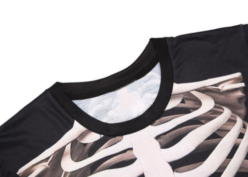 Express your unique style with our Skeleton T-shirt, blending horror and creativity seamlessly. Featuring a skeletal bone pattern, this tee adds a personal touch to your wardrobe. The 3D round neck design ensures you stand out from the crowd. With short sleeves, it serves as more than just clothing—it's a canvas for your creatively compassionate style. Embrace the unconventional and make a statement with this piece that combines flair with a touch of the macabre.