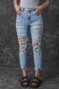 Sky Blue Acid Wash Distressed Slim Fit Jeans