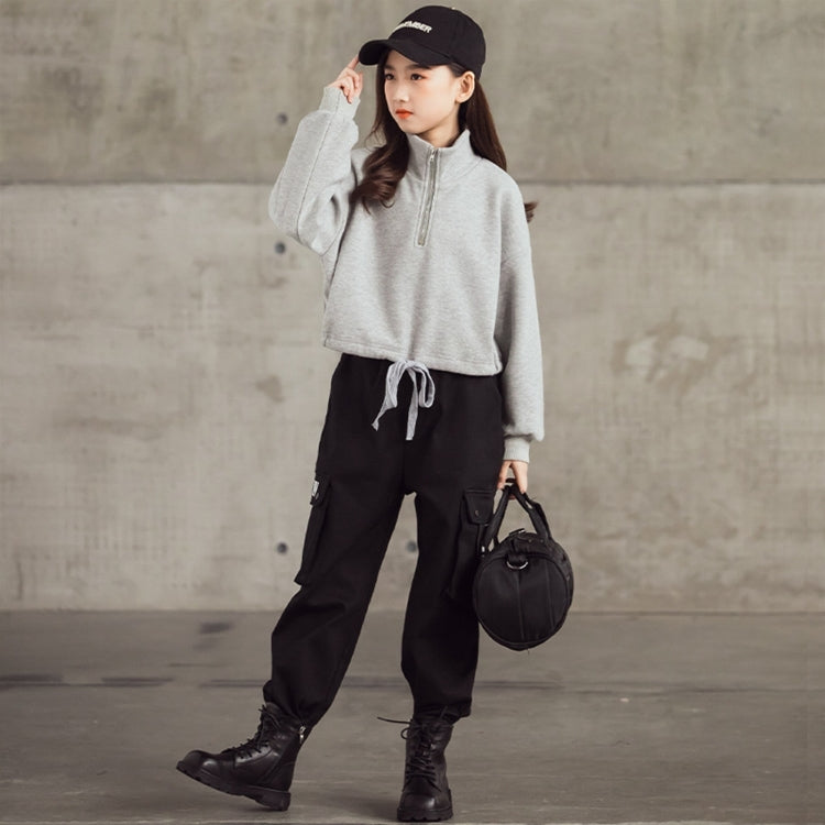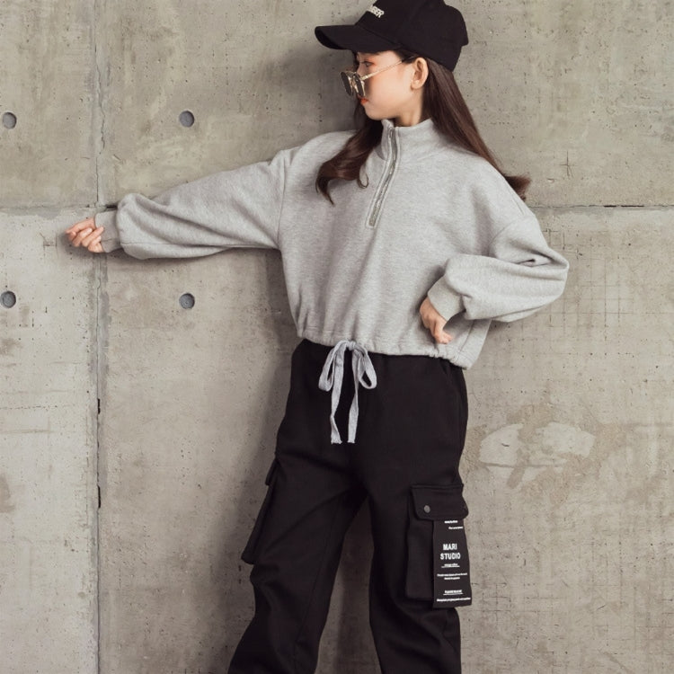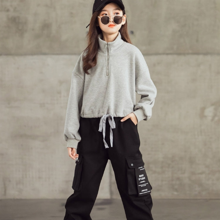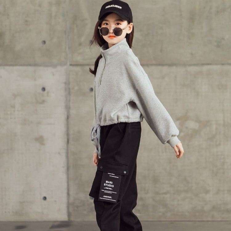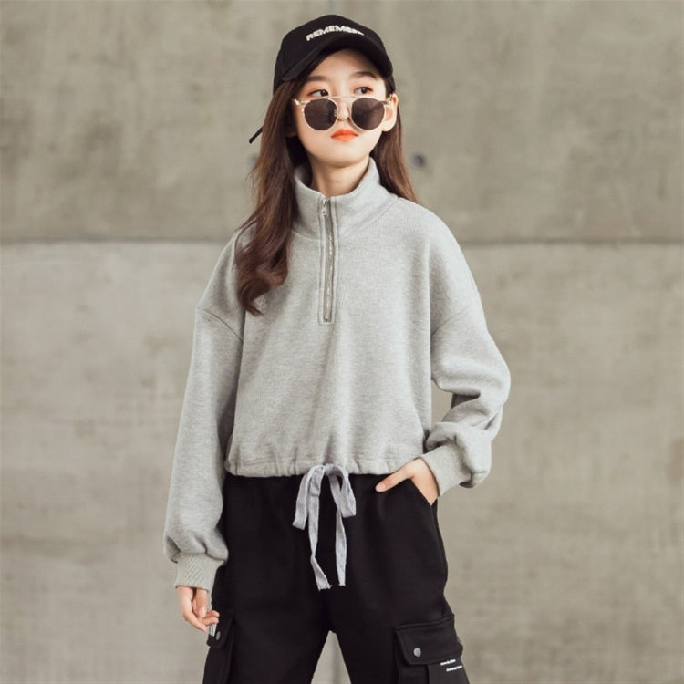 Spring Autumn Children Fashion Sweater Hoodies (Color:Grey Size:165cm)