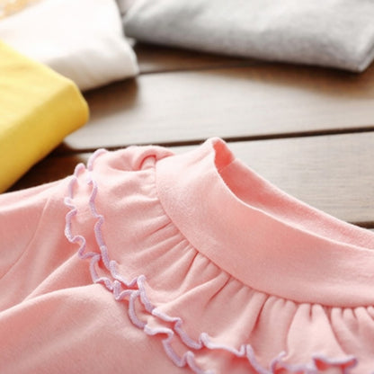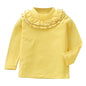 Spring Girls Solid Color Lace Round Neck Bottoming Shirt Children Clothing, Height:110cm(Yellow)