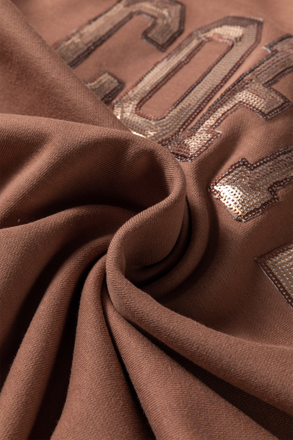 Straw Yellow Sequined COFFEE Loose Fit Sweatshirt and Shorts Set