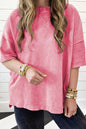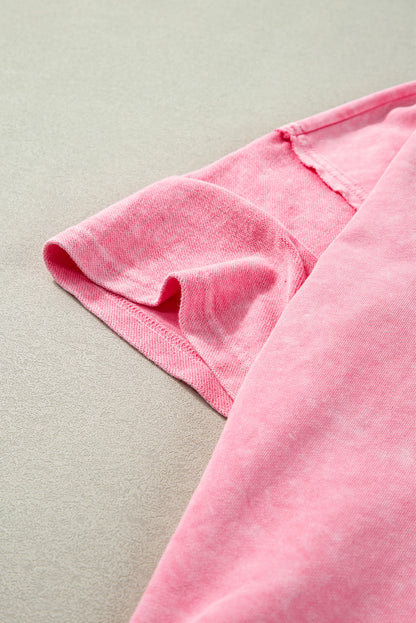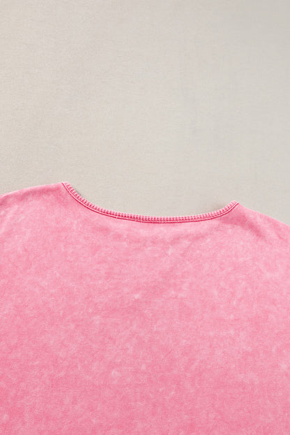 Strawberry Pink Mineral Wash Drop Sleeve Patchwork Plus Tee