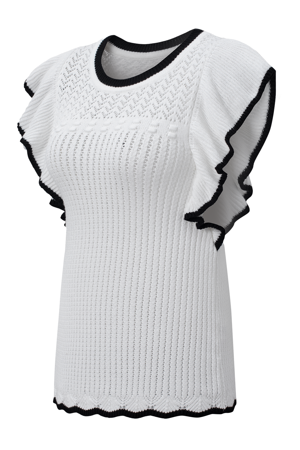 - This tank top features a contrast flounced trim which is graceful and eye-catching