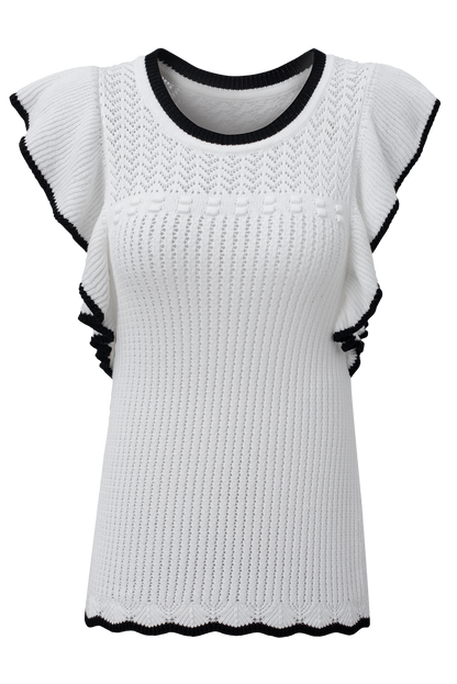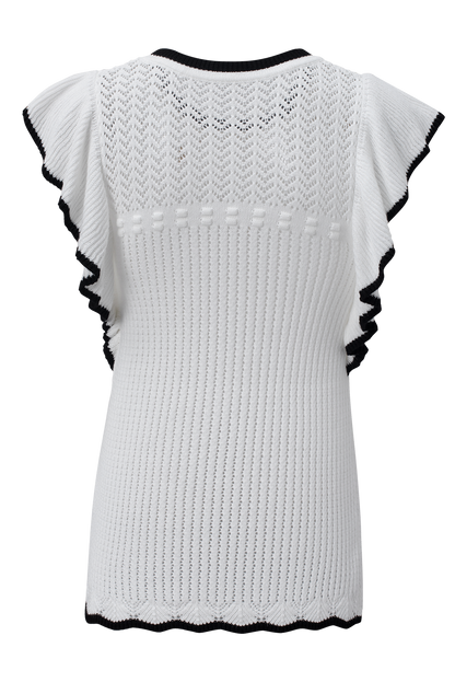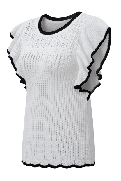White Crochet Eyelet Flounce Tank Top