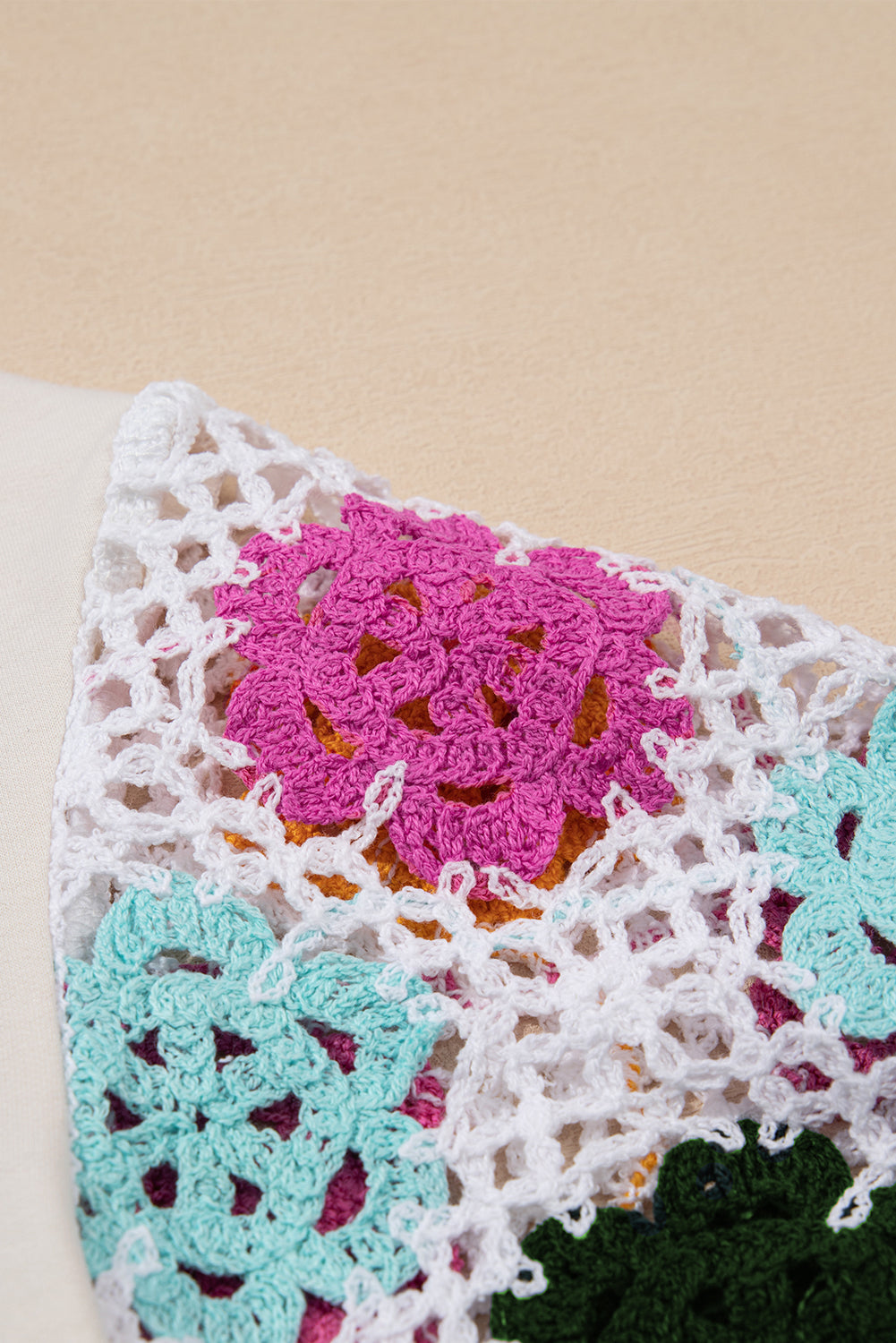 The floral crochet splicing adds a bohemian and romantic touch to the overall design
