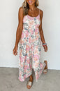 Introducing our White Floral Spaghetti Straps Wide Leg Jumpsuit, a charming and feminine addition to your wardrobe. Crafted from lightweight fabric adorned with a delicate floral print, this jumpsuit exudes elegance and grace. The spaghetti straps provide a dainty and adjustable fit, while the wide-leg silhouette offers comfort and movement. Perfect for warm-weather occasions, whether it's a garden party or a day out with friends, this jumpsuit radiates effortless style. Dress it up with heels and statement jewelry for a sophisticated look, or keep it casual with sandals and a sun hat for a relaxed vibe. Embrace the beauty of florals and the ease of a jumpsuit with our White Floral Spaghetti Straps Wide Leg Jumpsuit.