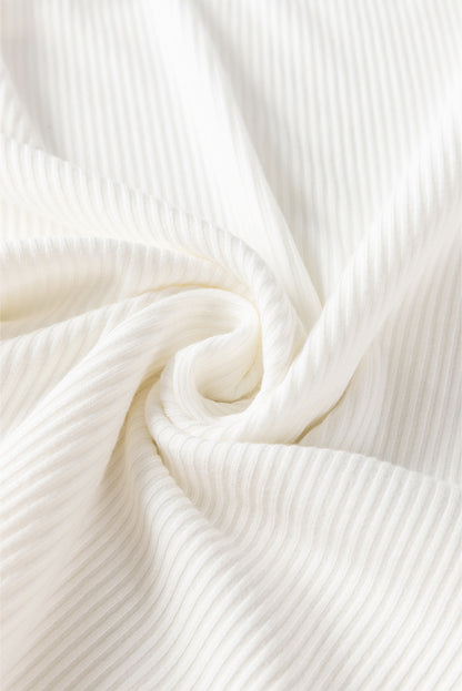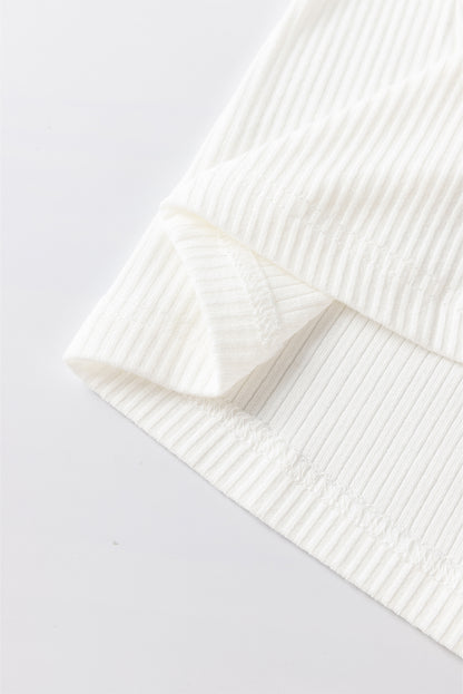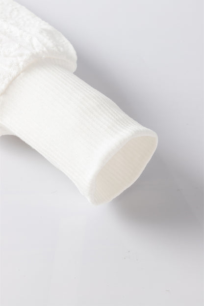 White Flower Puff Sleeve Ribbed Knit Top