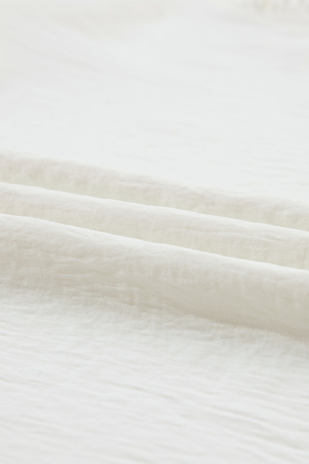 White Frilled Neck Ruffled Trim Bubble Sleeve Blouse