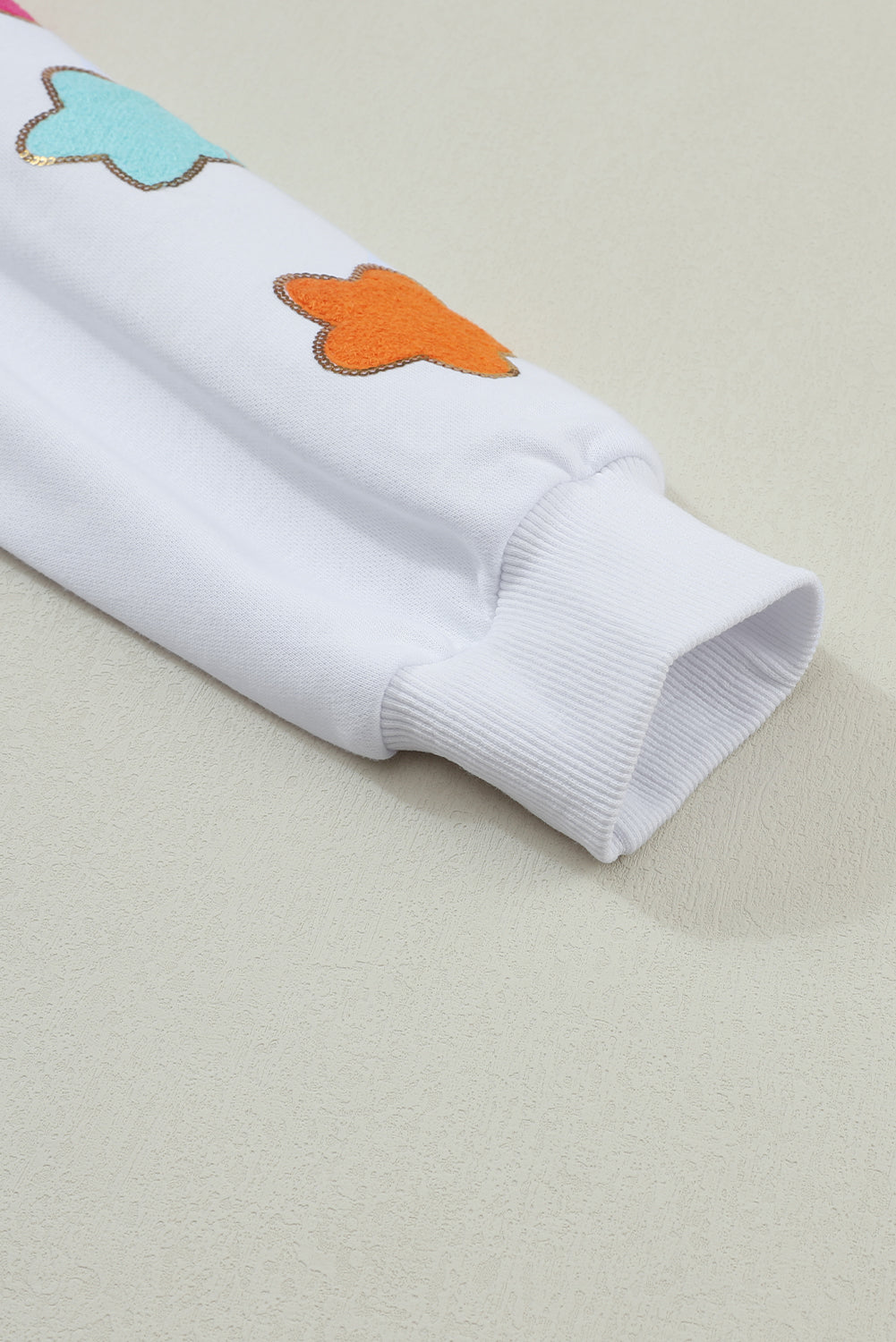 White Howdy Glitter Chenille Patch Graphic Casual Sweatshirt