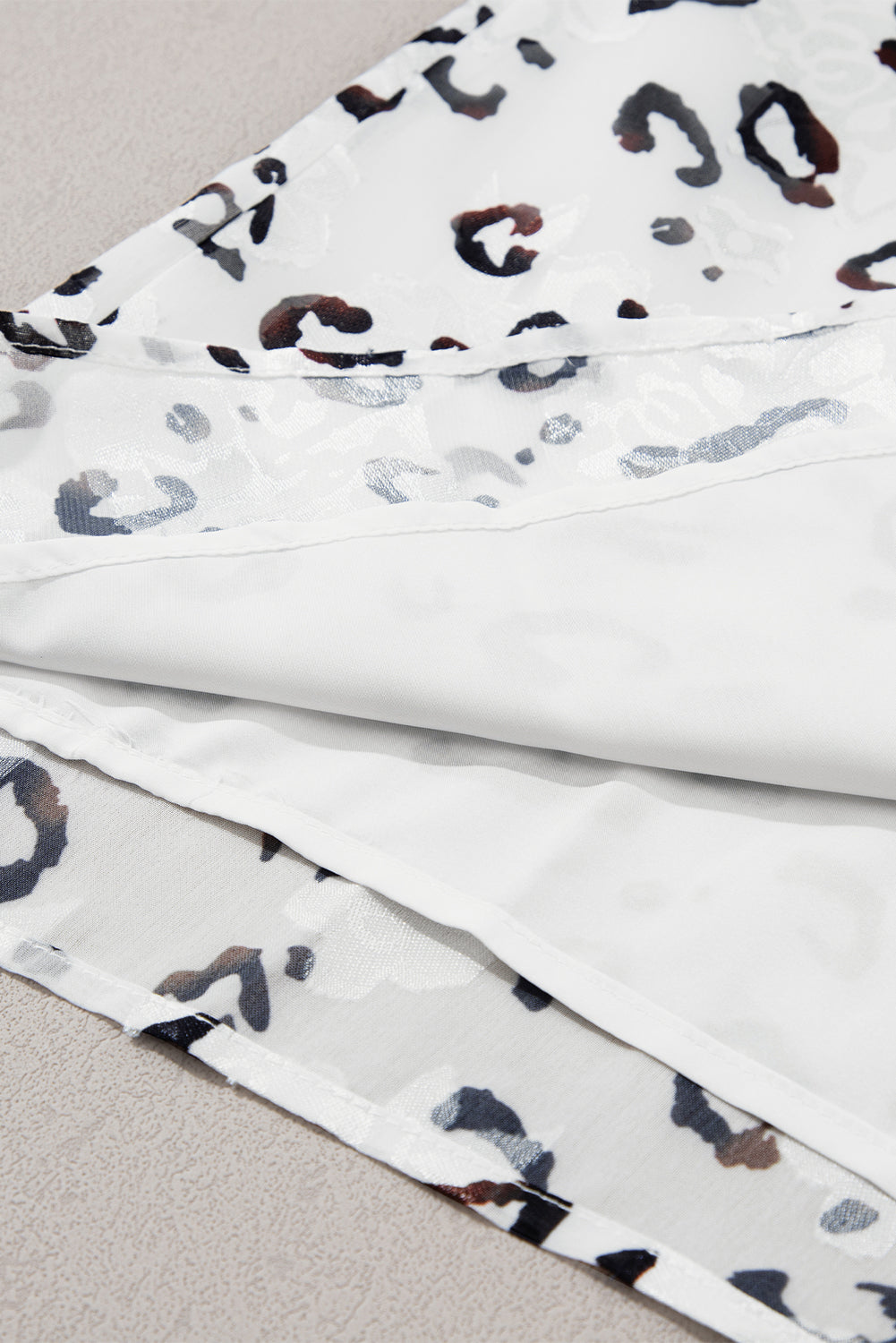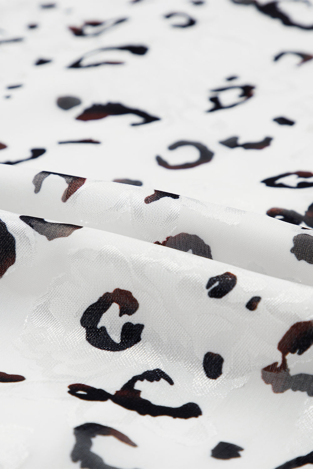 White Leopard Print Button up Ruffled Sleeve Shirt