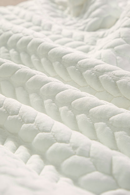 White LUCKY Chenille Embroidered Cable Knit Pullover Sweatshirt