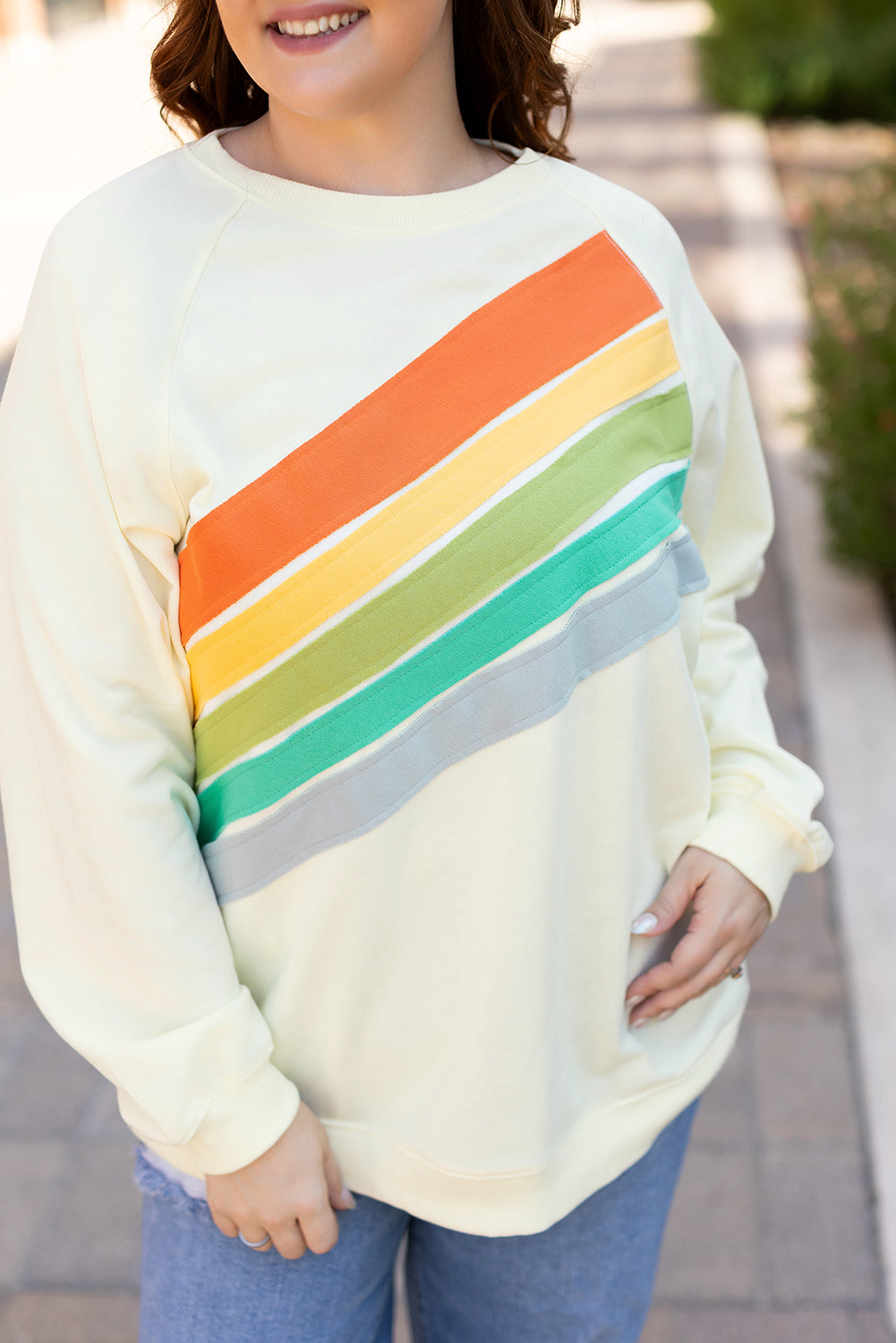 white Rainbow Raglan Sleeve Crew Neck Plus Size Sweatshirt
