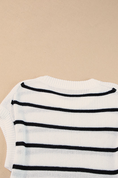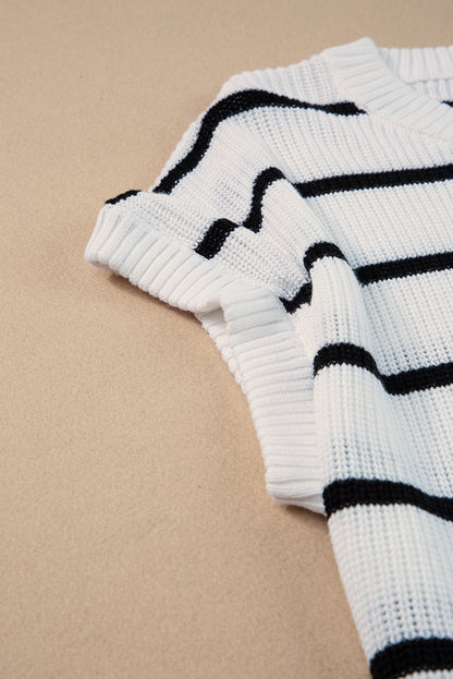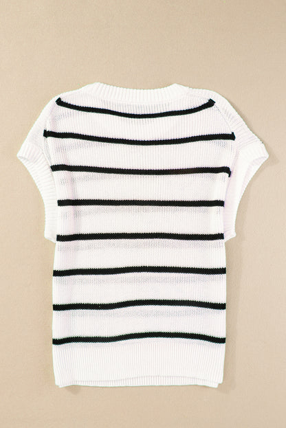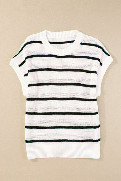 - Stay on-trend with this stylish short sleeve sweater featuring a timeless striped pattern