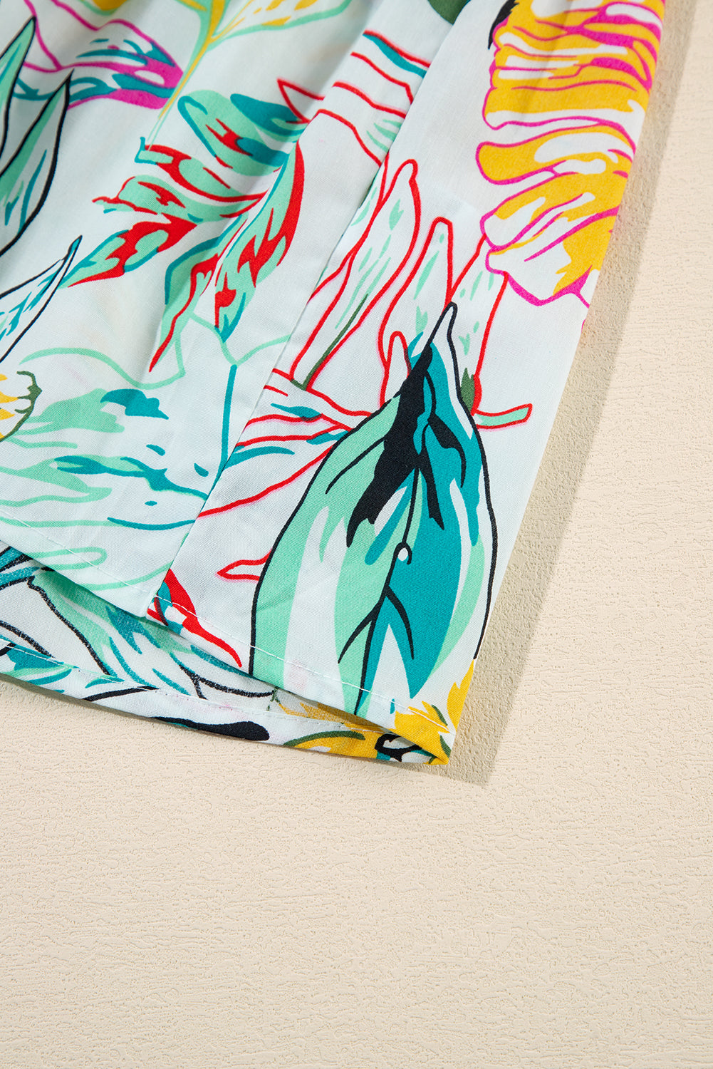 White Tropical Floral Print Ruffled Short Sleeve Blouse