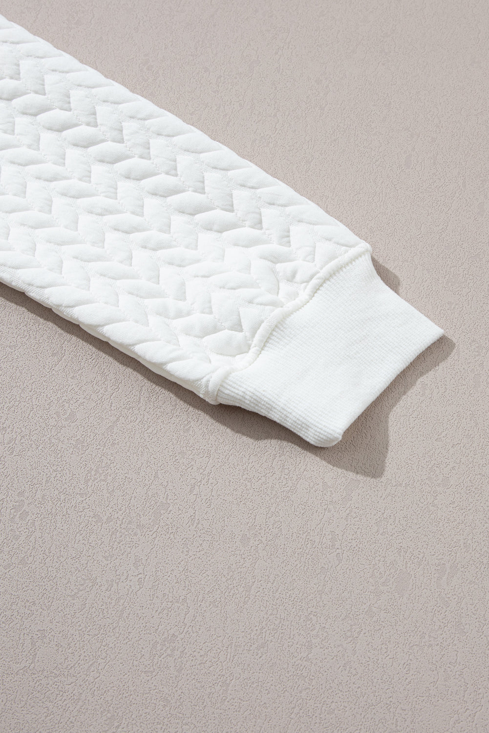White XOXO Glitter Chenille Cable Knit Pullover Sweatshirt