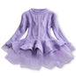 Winter Girls Knit Long Sleeve Sweater Organza Dress Evening Dress, Size:140cm(Purple)