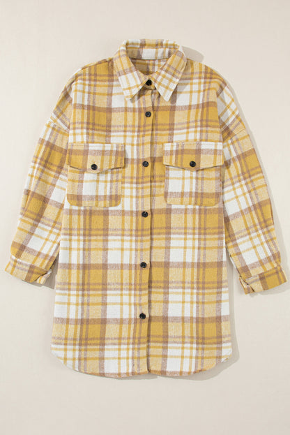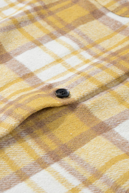 Yellow Plaid Flap Pocket Long Sleeve Shacket